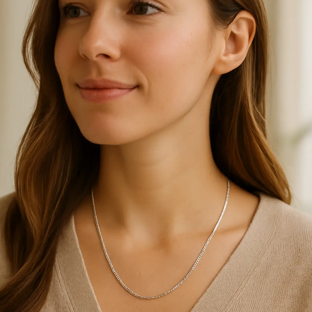 La Cadena Veneciana de Plata 925 – 45 cm, es ese accesorio que combina delicadeza, brillo y estilo en una sola pieza, lista para acompañarte todos los días.
