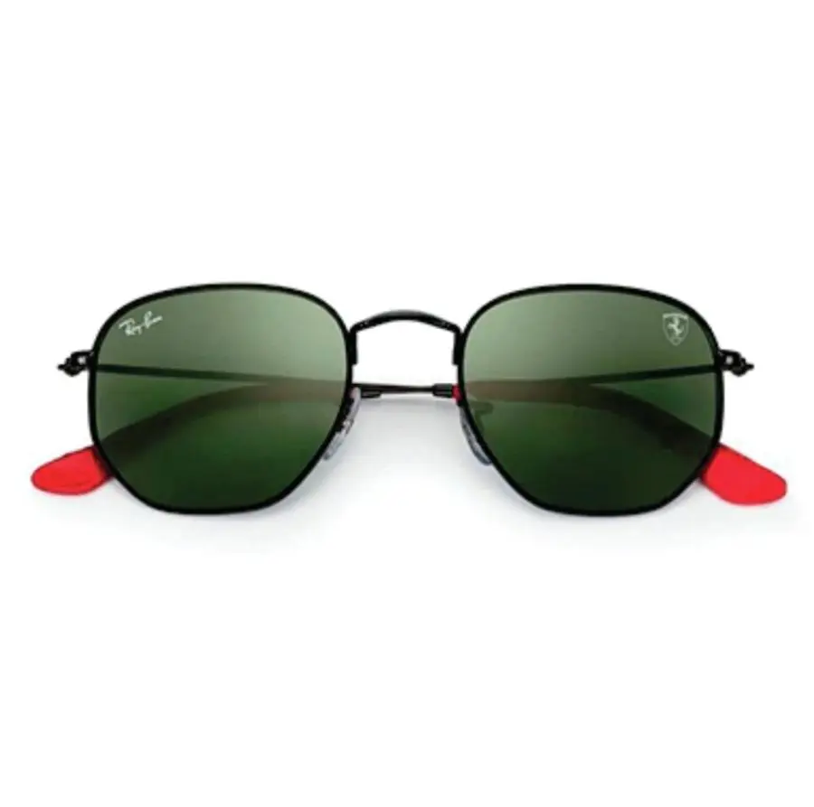 LENTES RAY-BAN FERRARI HEXAGONAL – NEGRO / GRIS PATILLA CON PUNTA ROJA