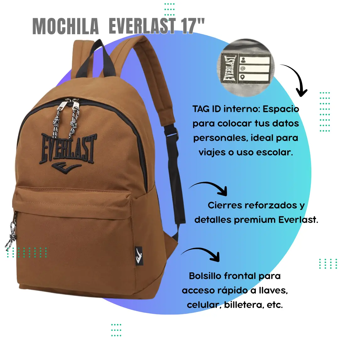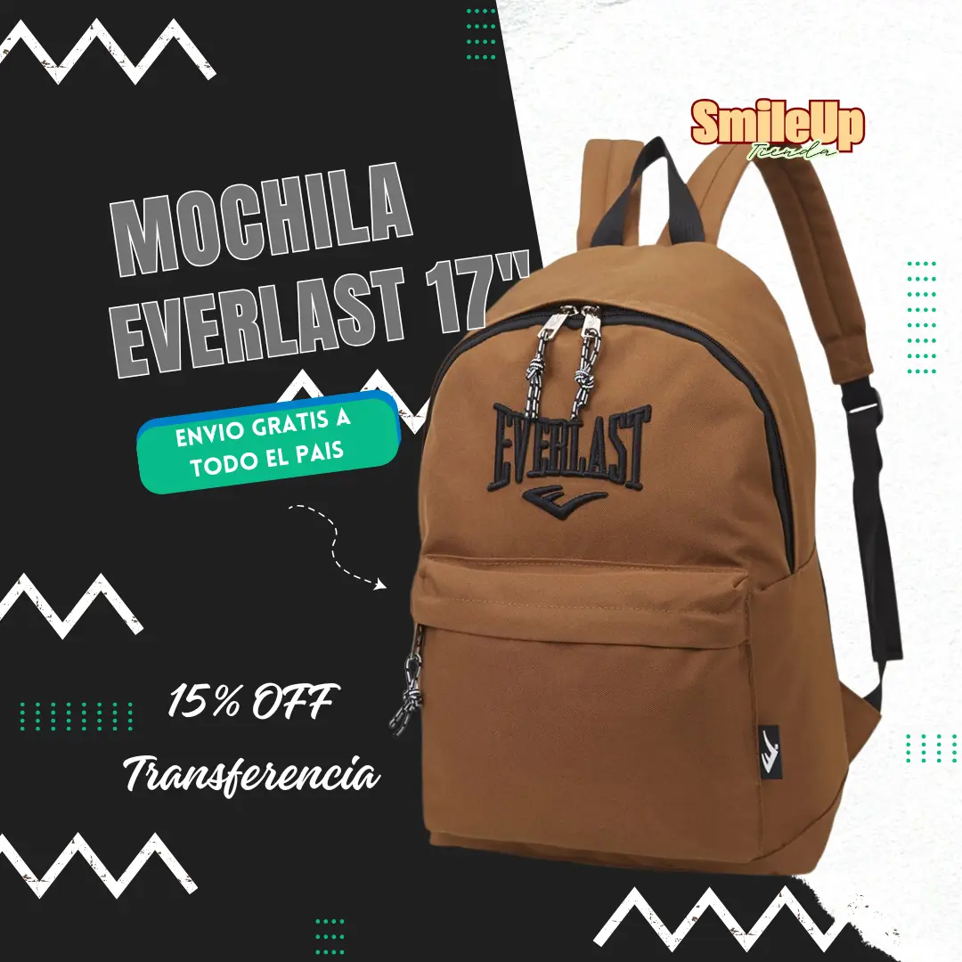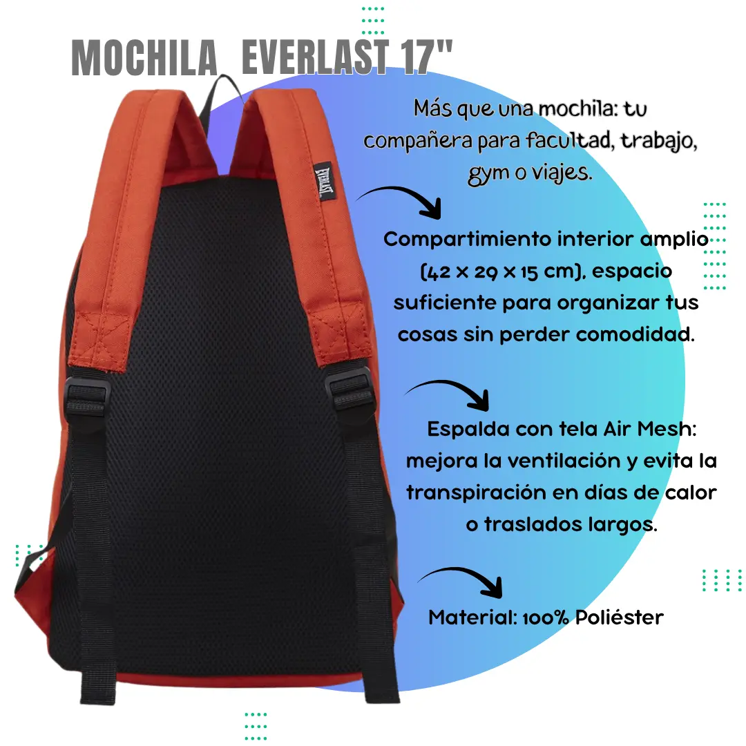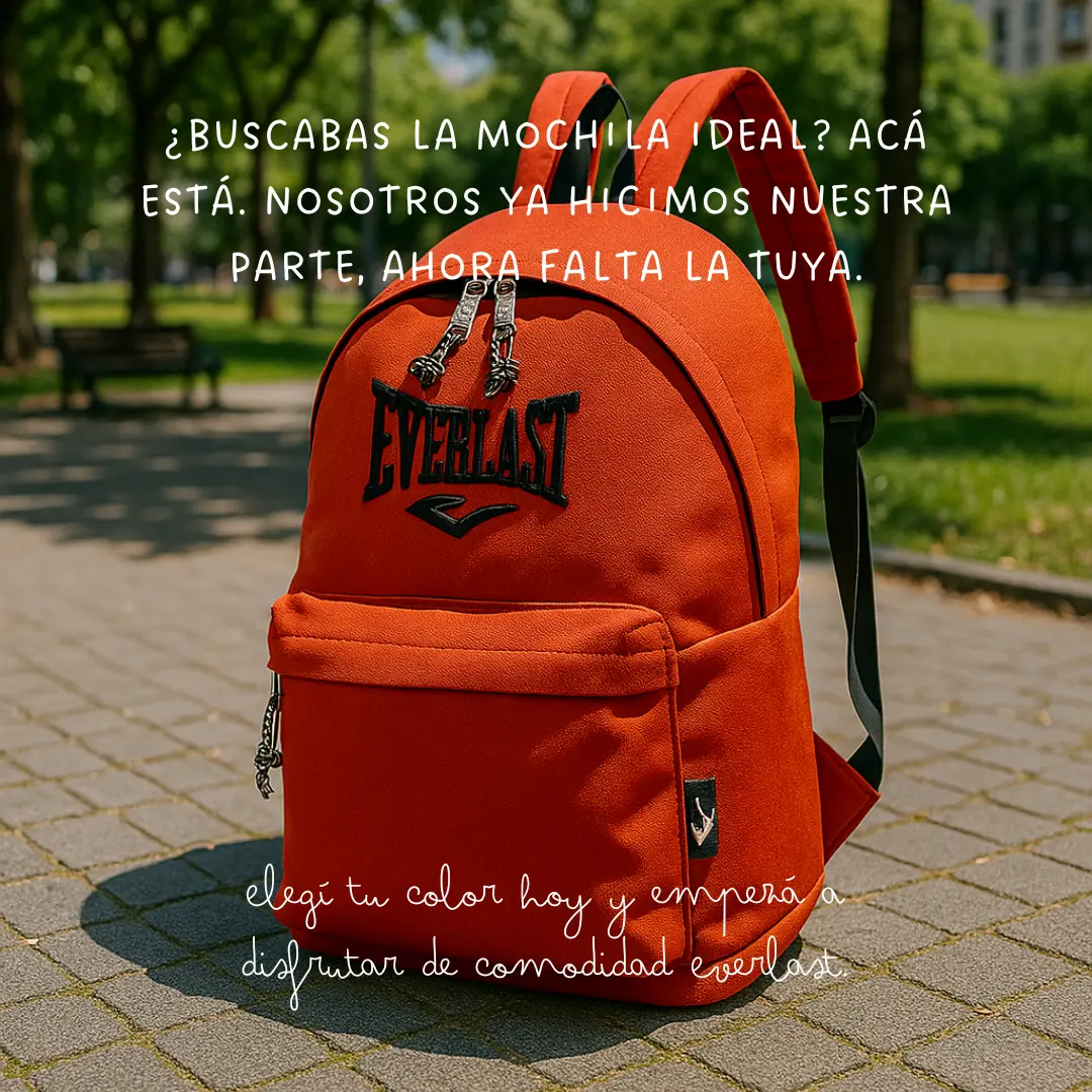 Si buscás una mochila resistente, práctica y con estilo, esta Everlast es para vos. Diseño minimalista, líneas simples y logo bordado que se destaca sin gritar. Ideal para oficina, facultad, gym o viajes. Va con todo y se adapta a tu ritmo.