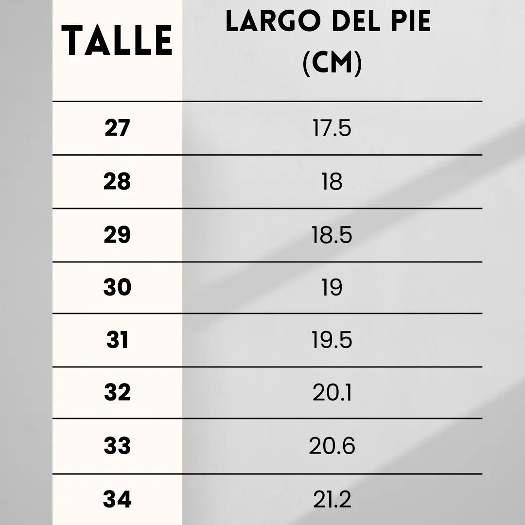 - Talles del 27 al 34