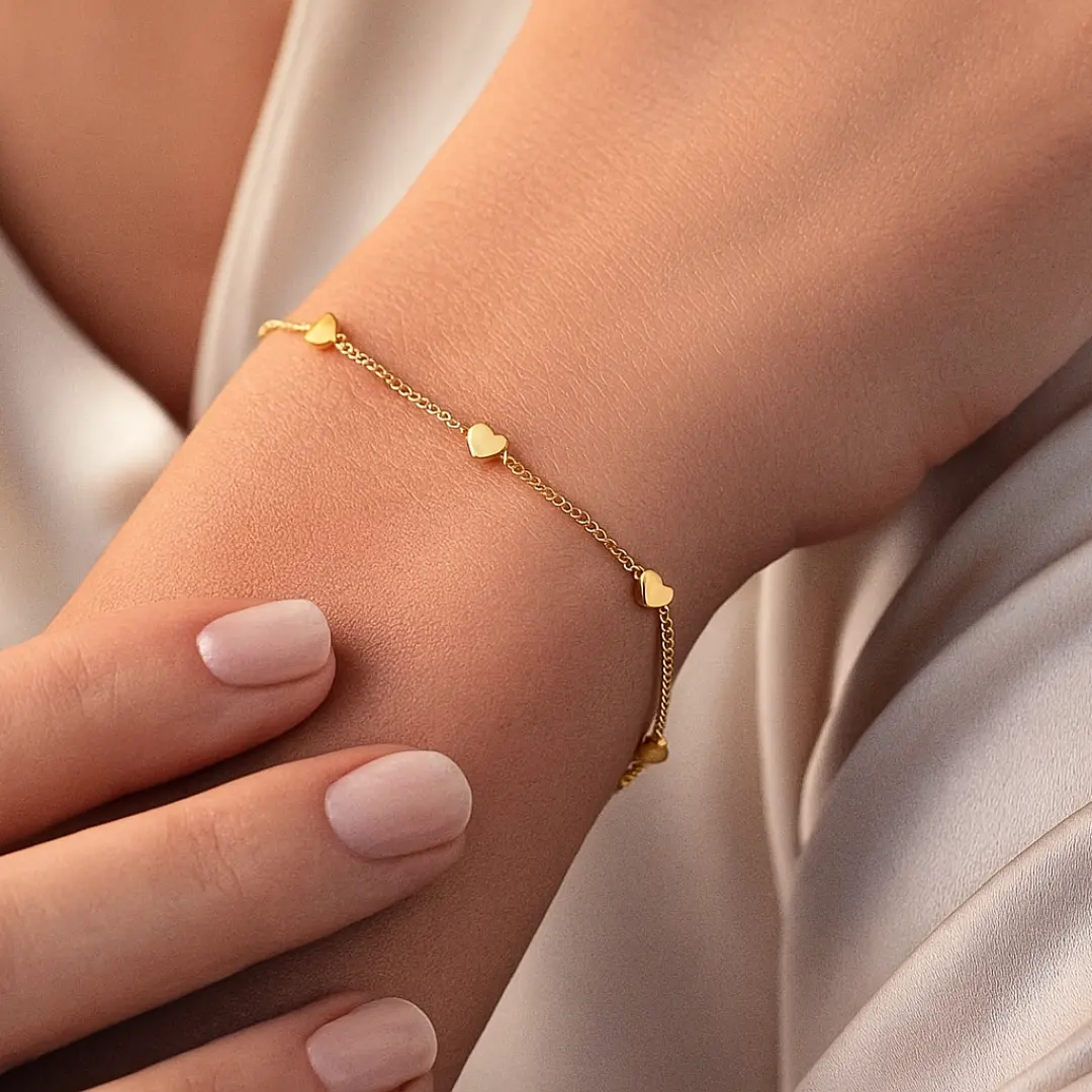 Esta pulsera es ideal para regalar o regalarte. Los corazones representan conexión, cariño y momentos especiales, convirtiéndola en una joya cargada de emoción.