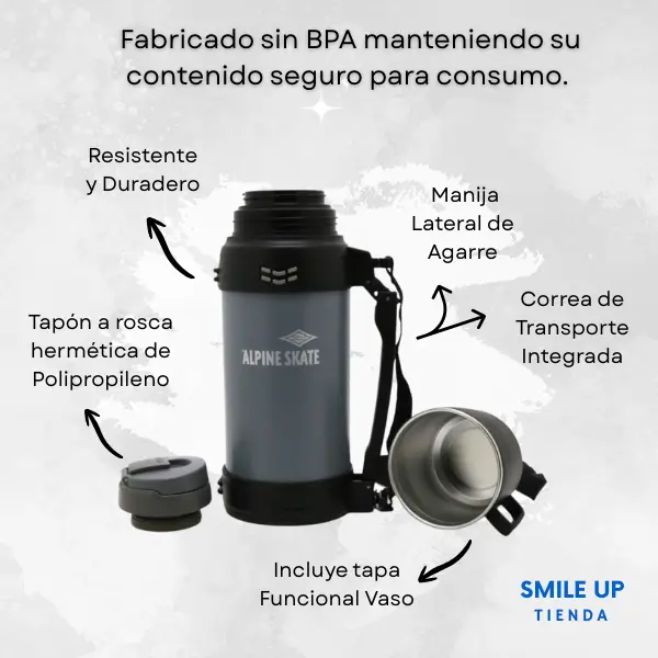 No te quedes sin el Termo Alpine Skate 1.6 L, el aliado perfecto para tus mates, viajes y caminatas.